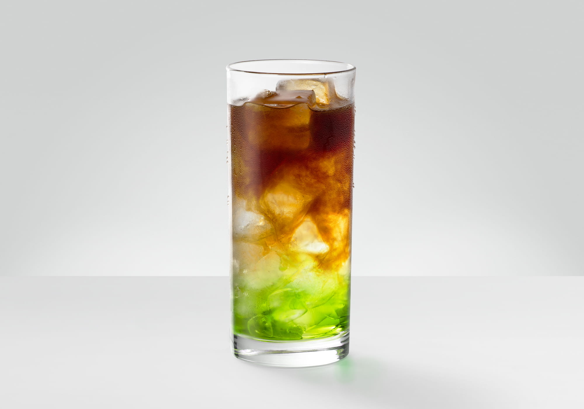 • Versez la liqueur de melon puis complétez avec de la limonade au citron à peu près jusqu’aux deux tiers du verre.